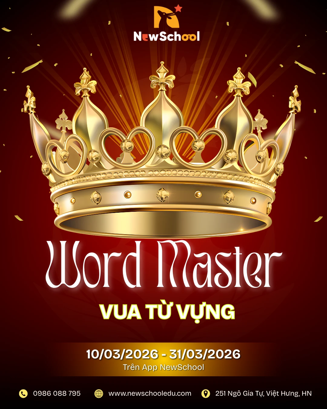 Giải đấu VUA TỪ VỰNG – Word Master Challnge đã chính thức bắt đầu trên App NewSchool. Đây là sân chơi ý nghĩa giúp các em học sinh phát triển từ vựng, tạo tinh thần và động lực học tập tiếng Anh.